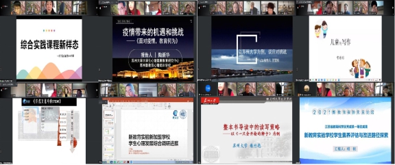 学术汇报部分,首先,由郝京华、陶新华、王莹彤、管建刚四位特邀嘉宾做了学术报告,为新教育实验学校的课程研发、教材编制及学校心理健康咨询建言献策。接着,王伟群、丁敬耘、谢竹艳、杨帆四位项目负责人分享了所主持项目的进展情况与已有成果,提出了项目实施途径中所存在主要问题,阐述了根据问题所得出的研究目标,并提供了新教育课程研发的思路,如,通过建立阅读联结以激发学生的兴趣并发展学生的思维,教师应善于使用提问、图像化、推测、转化等方式加强联结等。