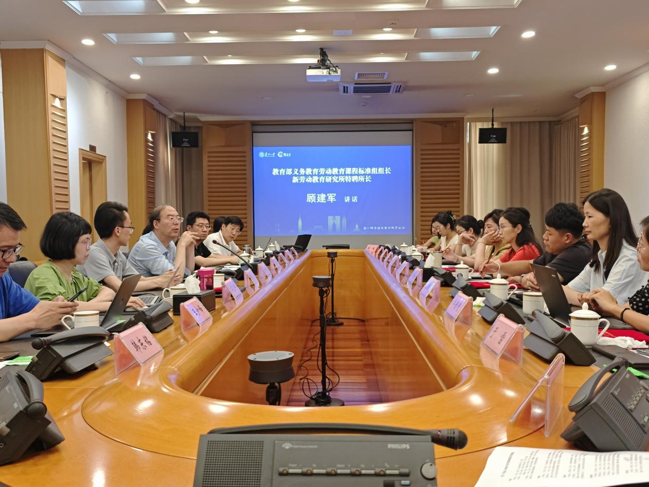 为全面贯彻党的教育方针,深入推进《义务教育劳动课程标准(2022年版)》配套资源建设,7月13日至16日,苏州大学新教育研究院劳动教育研究所年中工作会议在红楼会议中心召开。教育部义务教育劳动课程标准组组长、新教育研究院劳动教育研究所所长顾建军教授出席会议。来自北京、深圳、青岛、广州、南京、长春等地的课标组成员、劳动教研员、学科教师参加研讨。