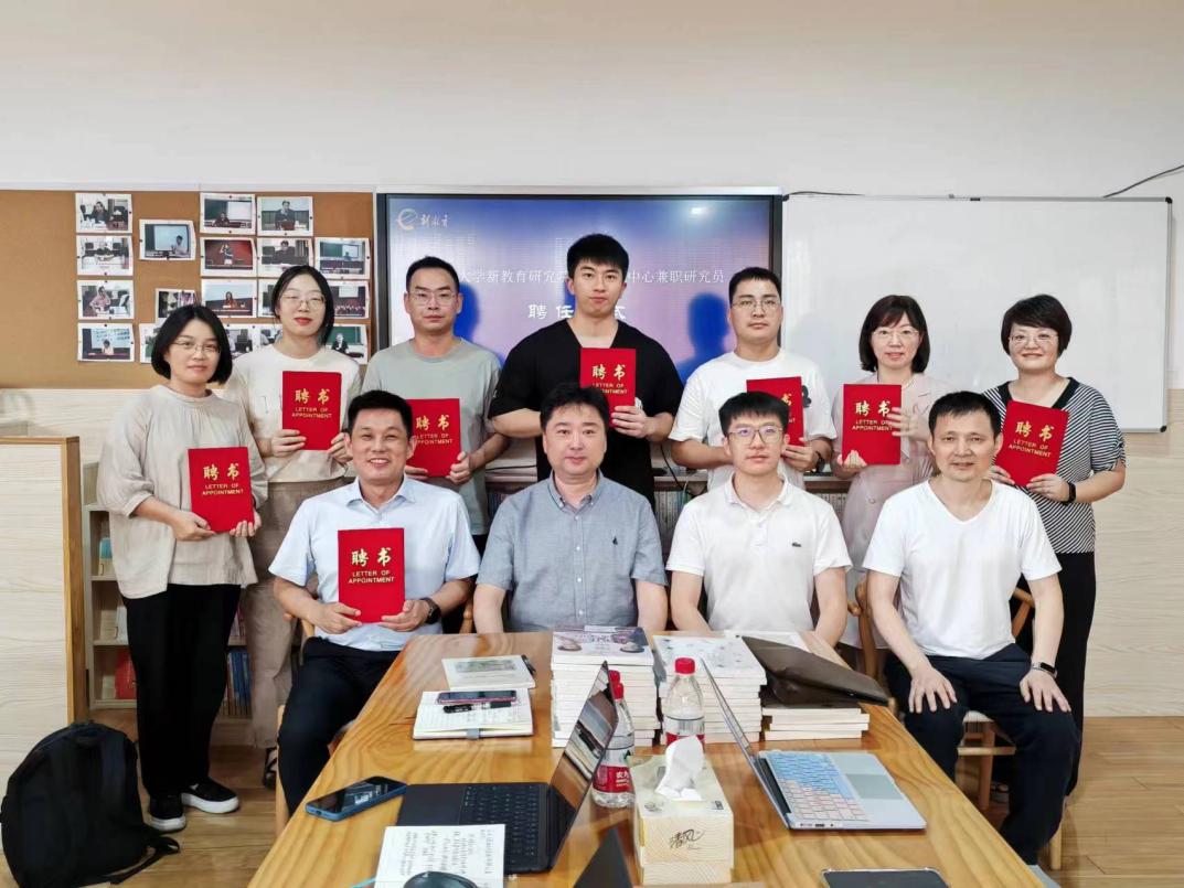 首先,苏州大学新教育研究院杨帆教授为徐栋等8位新聘兼职研究员颁发聘任证书,并合影留念。杨帆教授鼓励大家在工作中大胆实践,在写作中砥砺奋进。