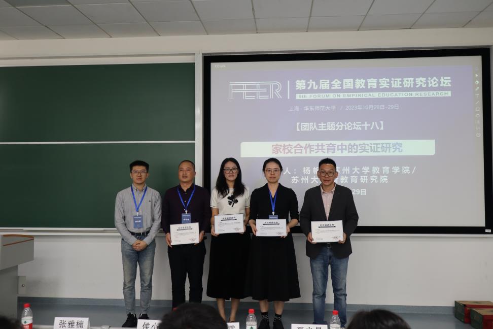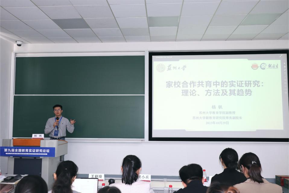 2023年10月29日,由苏州大学教育学院、苏州大学新教育研究院承办的第九届全国教育实证研究论坛之“家校合作共育中的实证研究”分论坛在华东师范大学成功举办。本场分论坛由苏州大学新教育研究院常务副院长杨帆副教授担任召集人,邀请来自南京大学、中国人民大学、华东师范大学、苏州大学、华中师范大学、首都师范大学、温州大学、绵阳师范学院、常熟理工学院等高校的12位嘉宾线下分享以“家校合作共育中的实证研究”为主题的最新研究成果。会议采用线上线下结合的方式,共约1600人参与。