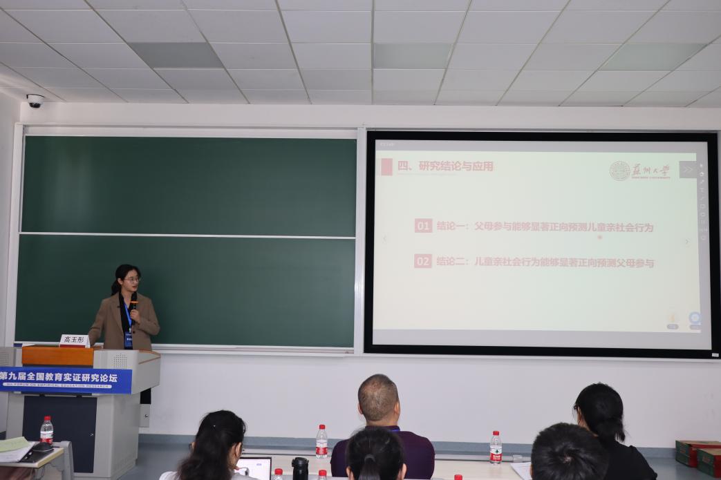 苏州大学教育学院高玉彤、徐睿同学以《父母参与对儿童亲社会行为的影响机制:一项追踪研究》为题,介绍了父母的参与行为对儿童亲社会行为发展的重要影响,认为应明确父母参与的重要性并积极促进父母参与,同时增强父母参与过程中父母与儿童二者间的互动性。
