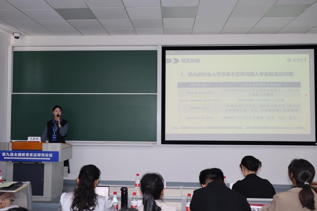 华东师范大学教育学部博士研究生朱行健以《家长和教师评价的幼儿同伴交往能力——基于多质多法统计分析》为题,指出在家庭和幼儿园的不同环境下,幼儿同伴交往能力在家长和教师的影响下存在显著的差异,同时提出应进一步考虑情境特异性并采用多元主体评分。